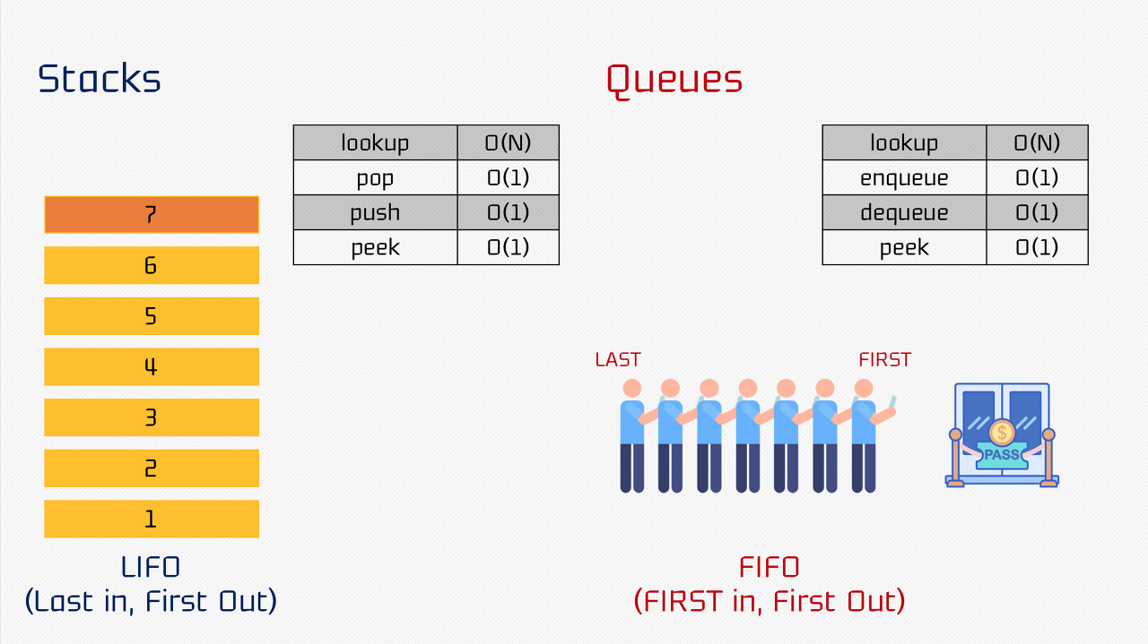 - 나중에 집어 넣은 데이터가 먼저 나온다. 데이터를 집어 넣는 push, 데이터를 추출하는 pop, 맨 나중에 집어 넣은 데이터를 확인하는 peek 등의 작업을 할 수 있다.