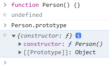์ฐ๋ฆฌ๊ฐ ํจ์๋ผ๋ ๊ฐ์ฒด๋ฅผ ์์ฑํ์ ๋ ๊ทธ ๊ฐ์ฒด์๋ prototype์ด๋ผ๋ object๊ฐ ์๋์ผ๋ก ์์ฑ๋๋ค. prototype์๋ ๋ค์ constructor๋ผ๋ ๊ฐ์ฒด๊ฐ ์๋์ผ๋ก ์์ฑ๋์ด ์๋ก๋ฅผ ์ฐธ์กฐํ ์ ์๊ฒ ๋๋ค.
