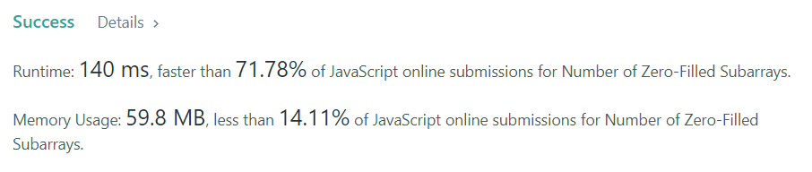 var zeroFilledSubarray = function (nums) {