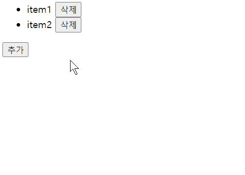 ์์ ์์ฑํ ์ฝ๋๋ฅผ ์ฌ์ฉํ๋ฉด render ์ ์ด๋ฒคํธ๊ฐ ์๋ก ๋ฑ๋ก๋๋ค. ๊ฐ๊ฐ์ ์์ดํ ์ ๋ํด ์ญ์ ๊ธฐ๋ฅ์ ์ถ๊ฐํ๋ค๊ณ ํ๋ฉด ๋ค์๊ณผ ๊ฐ๋ค.