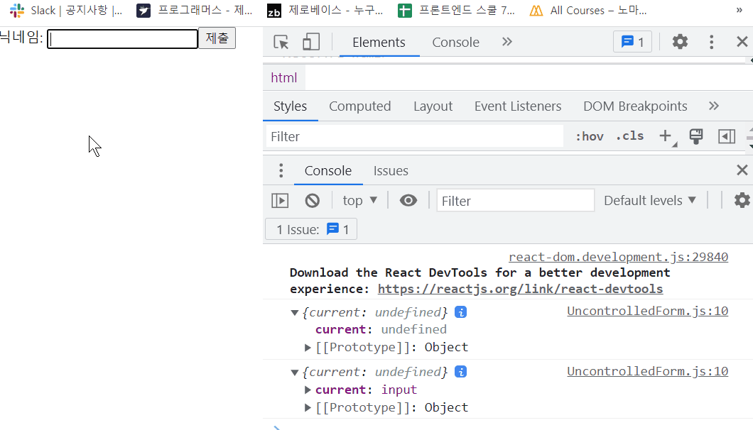 <input type="text" name="nickname" ref={inputRef} />