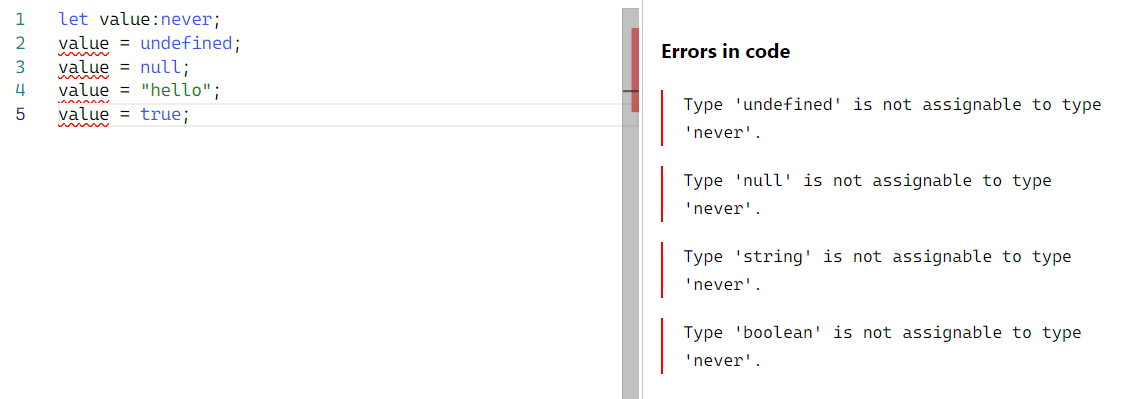- 어떤 타입도 존재할 수 없음