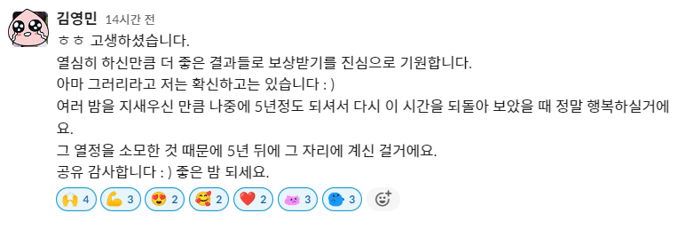 ์ด์ฉ๋ฉด ๊ฐ๋ฐ์๊ฐ ๋๊ณ ์๋์๋์ด ๊ฐ๋ฐ์๊ฐ ๋ด ์ฝ๋๋ฅผ ๋ฏ์ด์ ๋ณด๊ณ ํผ๋๋ฐฑ์ ์ค ๊ธฐํ๊ฐ ์ ์์ ๊ฑฐ๋ผ๋ ์๊ฐ์ด ๋ค์ด์ ๋ฉํ ๋ง ์๊ฐ์ ์ง๋ฌธํ ๊ฒ๋ค๋ ๋ฏธ๋ฆฌ ์ ๋ฆฌํด ๊ฐ๊ณ , ๋ฉํ ๋ง ๋ ๋ค์๋ ํผ๋๋ฐฑ์ ๋ ๋ฐค์ ๊น์๋ผ๋ ๋น์ผ์ ๋ฐ๋ก ์์ ํ๋ค. ๋ํ ์ผ์ด ๋ชจ์ฌ์ ์์ฑ๋๋ฅผ ๊ฐ๋ฅธ๋ค๊ณ ์๊ฐํ๋๋ฐ, ๋ฉํ ๋์ด ๋ํ ์ผ์ ๋๋ฌด ์ ์ก์์ฃผ์ ์ ์์ฑ๋์ ํ๋ชซํ์ง ์์๋ ์ถ๋ค.