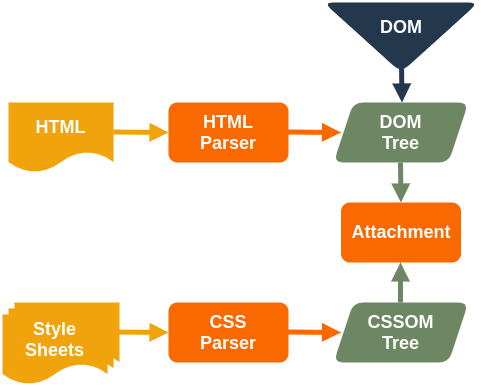 - 렌더링 엔진은 HTML 문서 안에 포함된 스타일 시트(CSS)를 파싱하여 CSSOM(CSS Object Model) 트리를 구축한다.